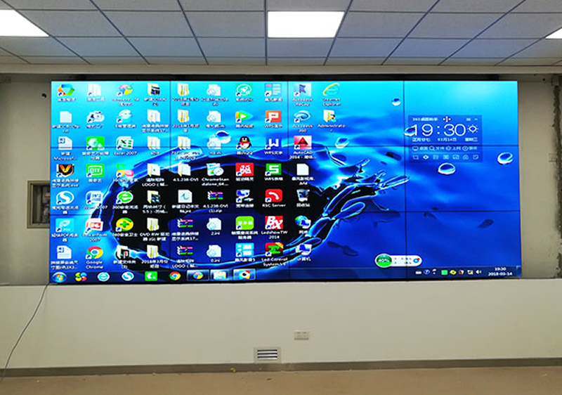 這套3x4三星55寸液晶拼接屏應用在中國海洋大學的會議室,雙邊拼縫只有3.5mm,主要用來顯示教育、培訓、會議等教學內容。