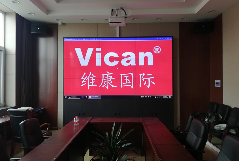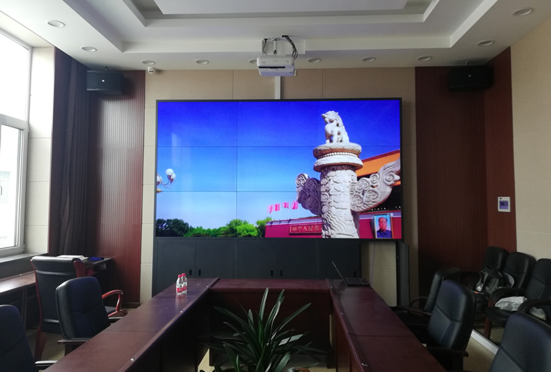 該案例中,維康國際為遼寧沈陽某檢察院提供一套會議大屏,采用3行3列,機柜式安裝安裝的55寸液晶拼接屏,超窄邊設計,雙邊物理拼縫僅有0.88mm,有著很好的大屏畫面一體化顯示效果。