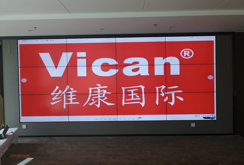 本案例中,維康國際為長沙某中學圖書館提供了一套液晶顯示屏,由3x3拼接、55寸3.5mm拼接屏組成,大屏畫面清晰亮麗,拼縫較小,采用內嵌式安裝,如上圖所示。