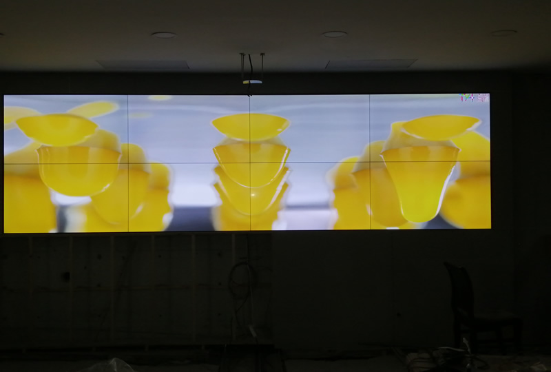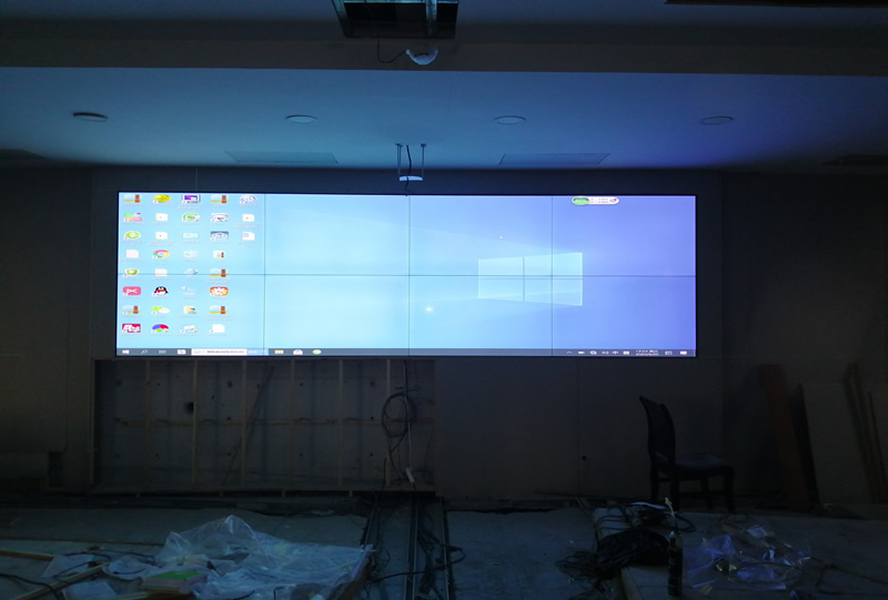 本案例中,維康國際為煙臺供電局提供一套展廳液晶拼接屏,采用2x4拼接、55寸0.88mm液晶拼接屏,超窄邊設計,雙邊物理拼縫僅有0.88mm,我們從上圖可以看出,大屏畫面基本不受黑邊影響,有著很好的畫面一體化顯示效果。