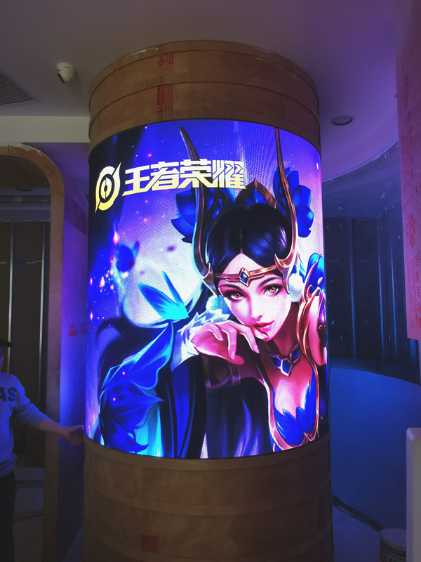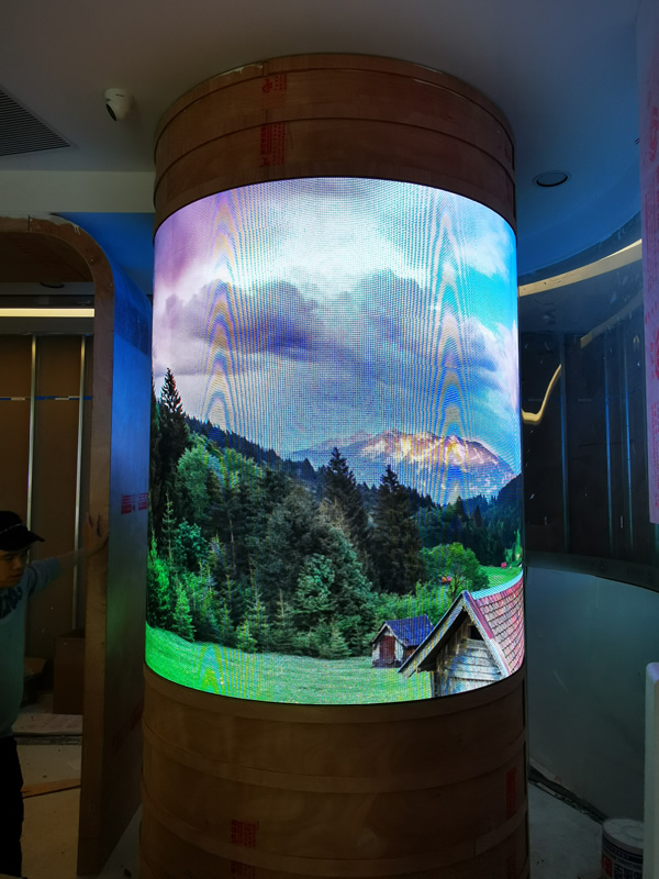 本案例中,維康國(guó)際為佛山市某企業(yè)展廳提供一套顯示大屏,采用圓柱形拼接的LED顯示屏,點(diǎn)間距為2mm,如上圖所示。