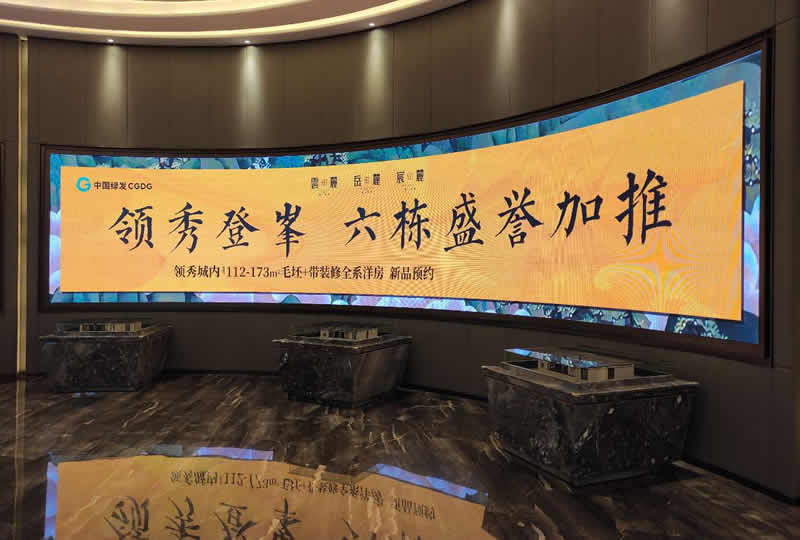 本案例中,維康國際為中國綠發CGDG的展廳提供一套顯示大屏,由P1.667軟模組LED顯示屏組成,如上圖所示,大屏幕與墻面設計成一體,畫面顯示清晰、一體化顯示效果好。