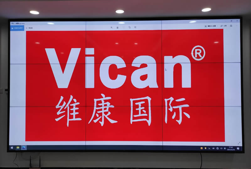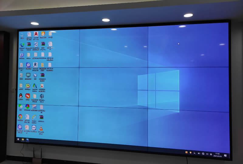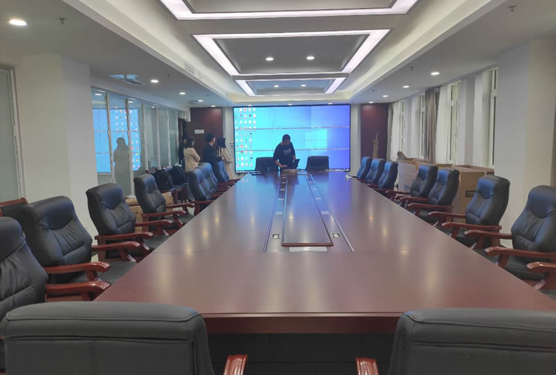 本案例中,維康國際為深圳儲能大夏某科技企業提供一套會議室液晶拼接屏,采用3x3、55寸0.88mm拼接屏,大屏幕清晰亮麗,超小拼縫,有著很好的一體化顯示效果。