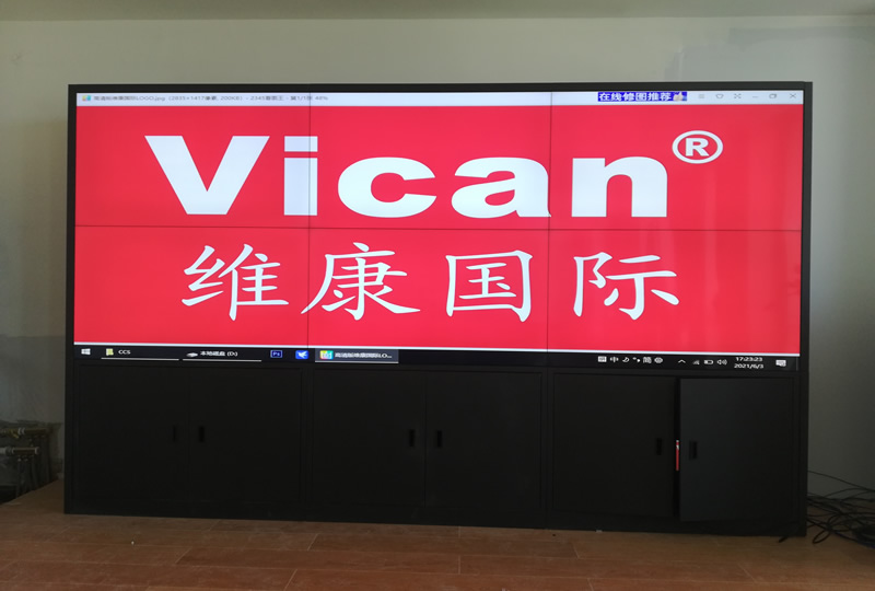 本案例中,維康國際為內蒙古錫林郭勒盟水利局提供一套會議大屏,采用2x3拼接、55寸液晶拼接屏,采用LG超窄邊面板,雙邊拼縫僅有0.88mm,有著很好的大屏畫面一體化顯示效果。