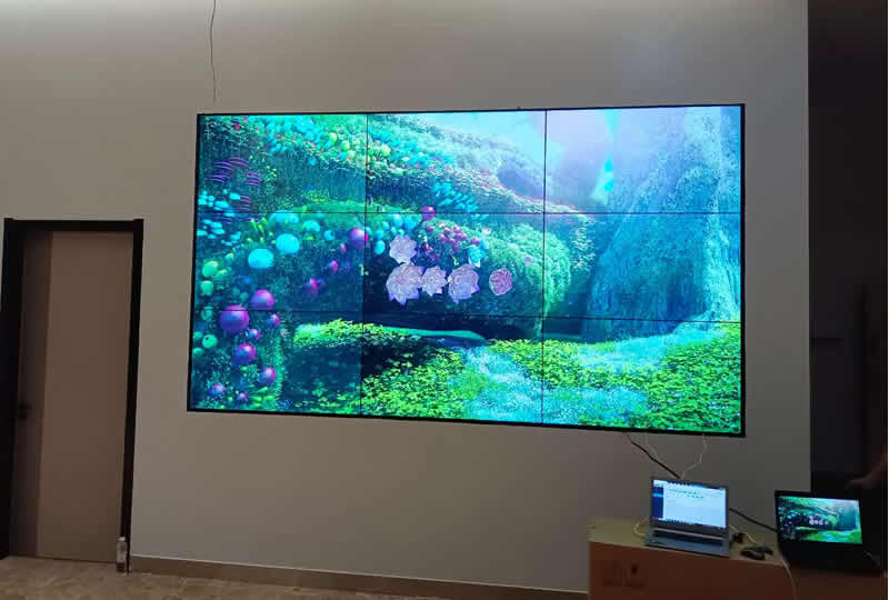 本案例中,維康國際為山東金鄉農村商業銀行提供一套4K液晶拼接屏,采用3x3拼接、49寸3.5mm液晶面板,大屏畫面清晰亮麗,一體化顯示效果好。