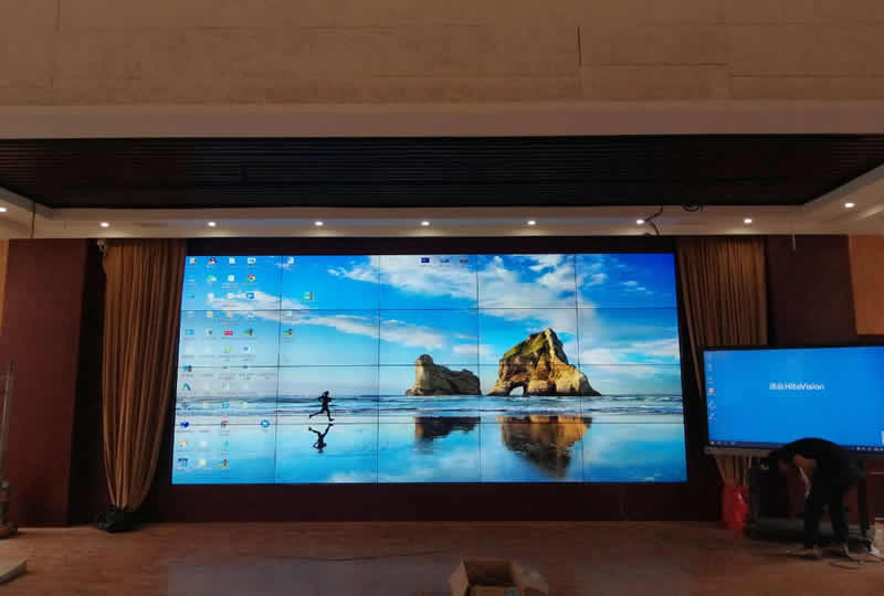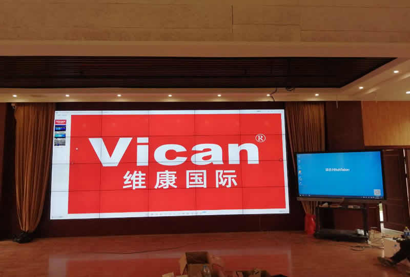 本案例中,維康國際為福建泉州某服裝廠提供一套室內的舞臺顯示大屏,采用4x5拼接、55寸液晶拼接屏,LG超窄邊1.8mm液晶面板,大屏幕畫面清晰,一體化顯示效果好。