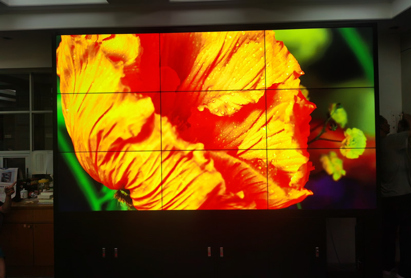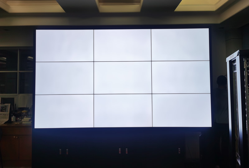 本案例中,維康維康攻擊深圳福田教科院提供一套辦公顯示大屏,采用3X3拼接、46寸液晶拼接大屏,屏體為三星超窄邊1.7mm液晶面板,大屏幕白平衡效果好,雙邊縫隙小,畫面顯示清晰亮麗,一體化顯示效果好。