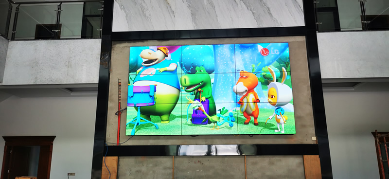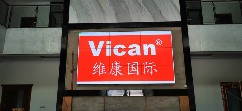 本案例中,維康國際為廣西北流物流公司提供一套前臺大廳顯示屏,采用3行3列、55寸液晶拼接屏,屏體為LG3.5mm原裝面板,大屏幕畫面顯示清晰亮麗,一體化顯示效果好,如上圖所示。