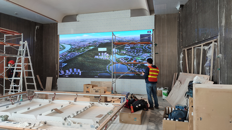 本案例中,維康國際為廣華潤置地金沙瑞府提供一套售樓中心顯示大屏,采用P2間距的全彩LED顯示屏,畫面顯示清晰,色彩鮮艷,有著很好的視覺體驗效果。