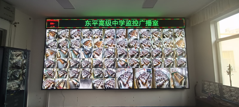 本案例中,維康國際為東平市高級中學的監控廣播室提供一套顯示大屏,采用3行4列、55寸液晶拼接屏,主要用來 顯示監控畫面,如上圖所示。