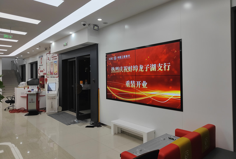 本案例中,維康國際為蚌埠市龍子湖支行提供了一套商顯拼接屏,大屏幕畫面顯示清晰,分辨率高,具有很好的視覺體驗效果。