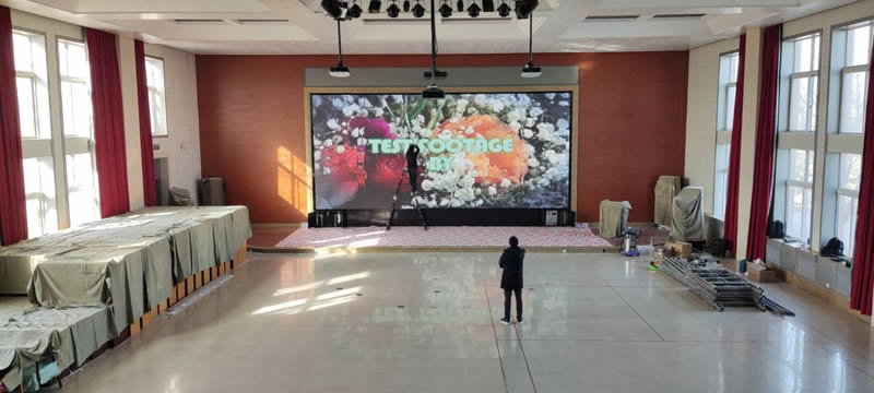 本案例中,維康國際為北京某人防綜合訓練基地提供一套報告廳顯示大屏,采用p2全彩LED顯示屏,大屏幕約36.8平方米,如上圖所示,大屏幕顯示清晰亮麗,整體顯示效果好。