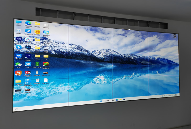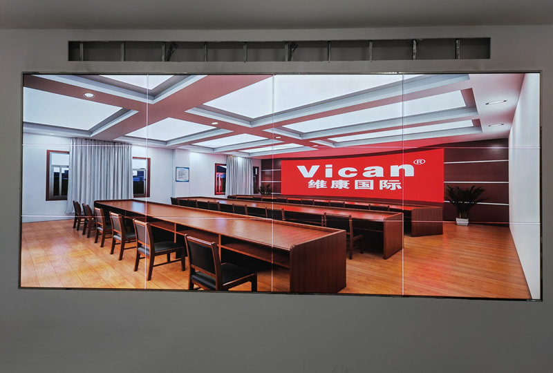 本案例中,維康國際為佛山順德某企業提供了一套高清顯示大屏,采用3行3列、55寸電子無縫拼接屏,如上圖所示,大屏幕顯示清晰亮麗,沒有黑邊的影響,全屏顯示的一體化效果很好。