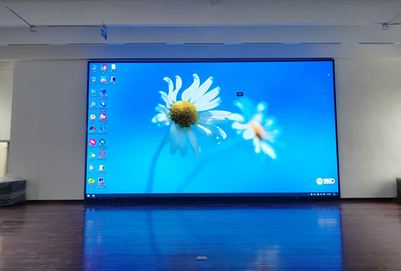 本案例中,維康國際為威海市文登經濟開發區某企業提供了一套展廳高清大屏,采用P2.5全彩LED顯示屏,大屏幕尺寸約30平方米,顯示清晰、一體化效果好,如上圖所示。