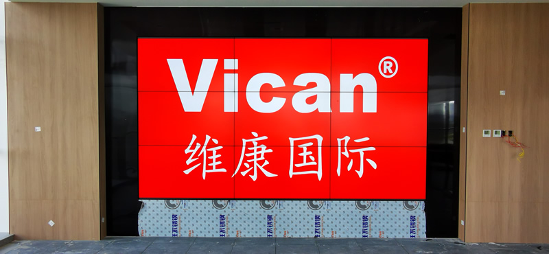 本案例中,維康國際為上海浦東某公司會議室提供一套高清顯示大屏,采用3x3拼接、55寸液晶拼接屏,拼縫為1.7mm,大屏幕顯示清晰,色彩豐富,一體化效果很好。