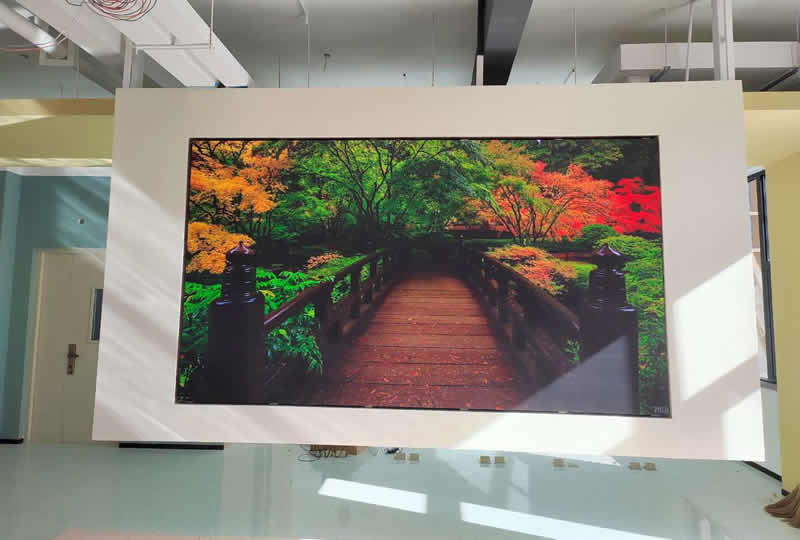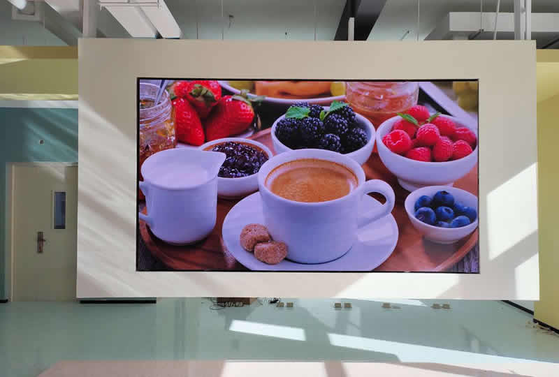 本案例中,維康國際為山西晉中某企業提供一套展廳LED顯示屏,采用P1.25的COB顯示屏,高清顯示,畫質清晰,懸掛式安裝,具有很好的視覺體驗效果。