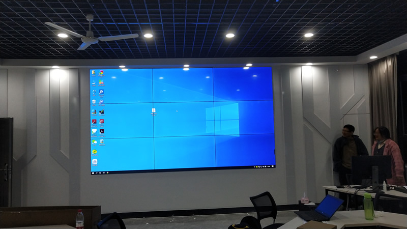 本案例中,這套顯示大屏是維康國(guó)際為福建南平市林職院提供的3行3列、55寸液晶拼接屏,雙邊拼縫為3.5mm,安裝在辦公室中,主要用來(lái)做辦公會(huì)議使用。