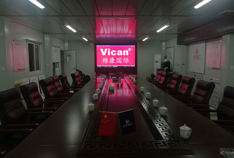 該案例的會議室大屏,由維康國際為北京建工花橋村二期提供的100寸智能會議平板,大屏顯示面積為:2203.7x1243mm,分辨率達到3840x2160,完美展現4K視頻及圖形。
