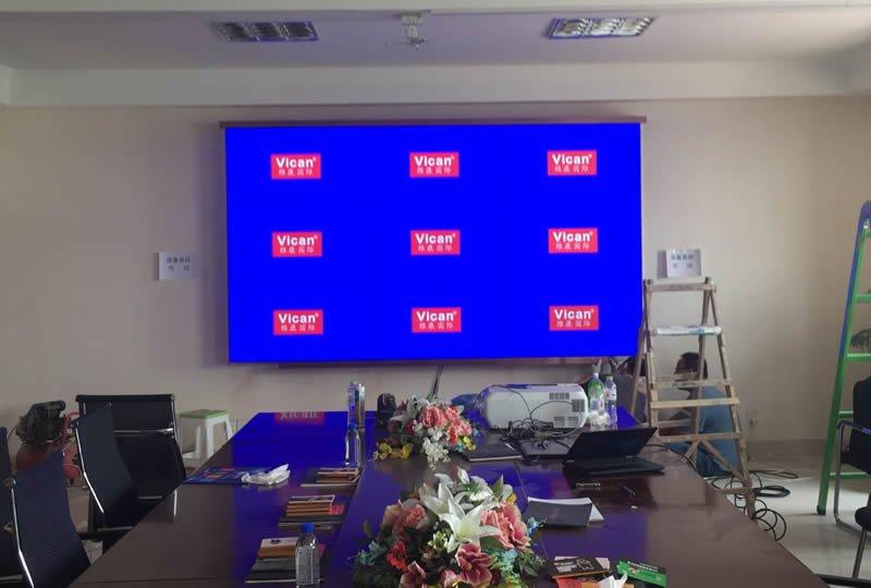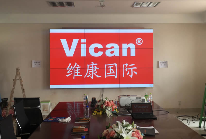 本案例中,是維康國際為珠海某國企提供的一套會議室大屏,3x3/55寸液晶拼接屏,超小拼縫,采用壁畫是安裝,大屏幕顯示清晰亮麗,一體化顯示效果很好。