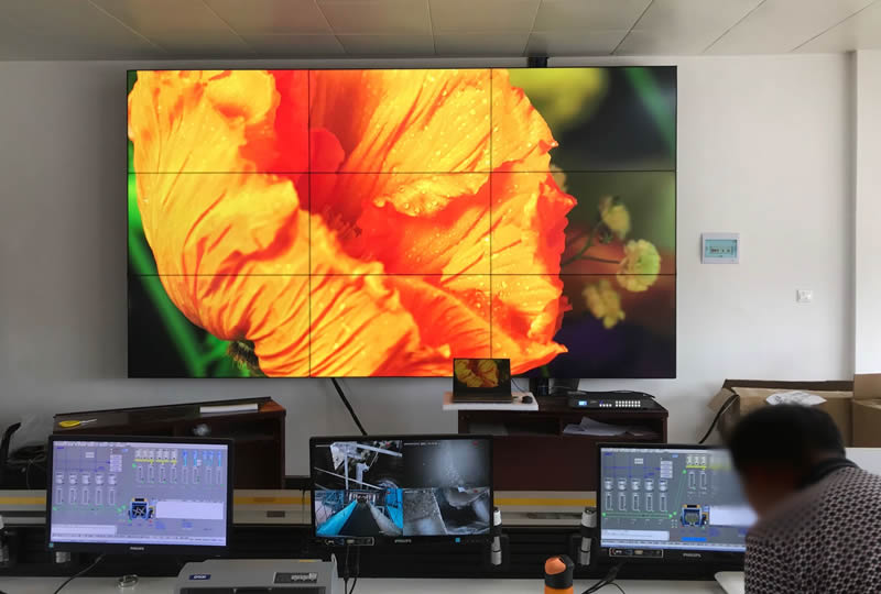 本案例,是維康國際為長沙牛力建設公司提供的一套監控拼接屏,采用3x3拼接、55寸液晶拼接屏,屏體采用三星1.7mm工業級液晶面板,支持全天不間斷的長時間工作模式。