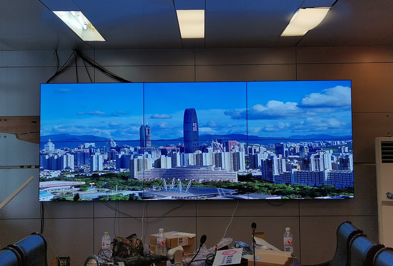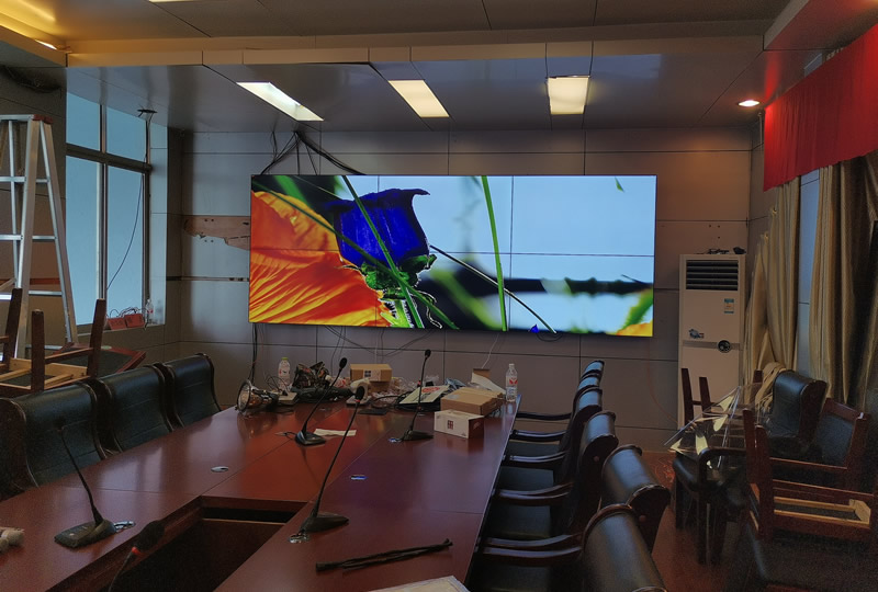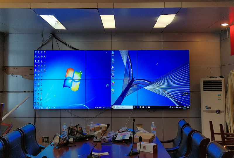 近日,維康國際為臺兒莊水務局的會議室安裝了一套大屏顯示系統,由2x3、55寸1.7mm液晶拼接屏組成,主要用來做會議信息顯示使用。