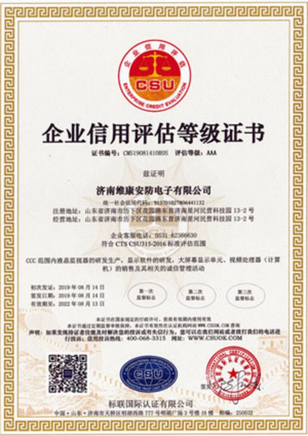 企業信用評估AAA證書