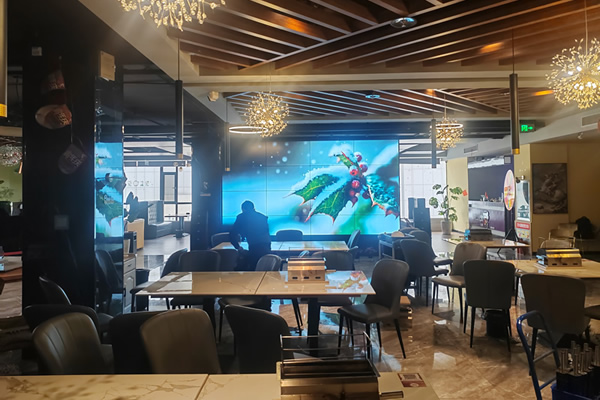 這是一款性價比很高的大屏,價格相比LED顯示屏或LED透明屏要便宜些。它與家庭電視相似,尺寸有46寸、49寸、55寸、65寸等,具有高清晰、色彩豐富、亮度適中的顯示效果,它的邊框很窄,可以拼接成一個大屏幕顯示。在商場中應用,可以讓商品的信息展示更加生動、真實,把商品展現給更多的顧客。