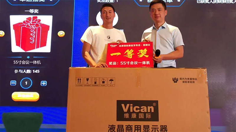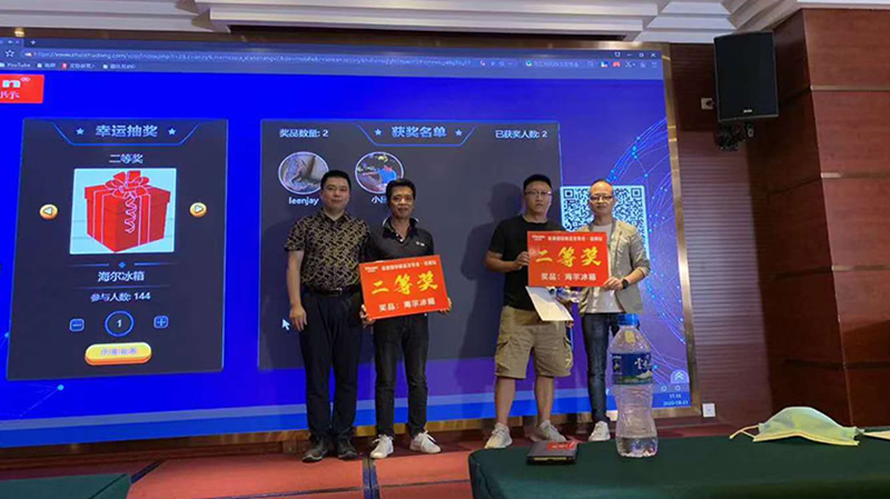 為更好的回饋新老客戶的支持與信任,在發(fā)布會過程中穿插進行多次抽獎活動,使現(xiàn)場熱度更加火爆。設(shè)立的獎項分為一等獎:維康國際55寸智能會議平板;二等獎:海爾冰箱;三等獎:小度智能屏。