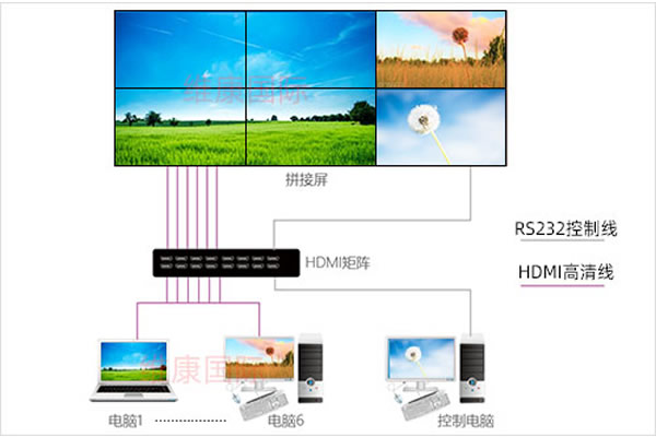 在實(shí)際應(yīng)用中,會(huì)議大屏上面一般只需要顯示一個(gè)畫面,這時(shí)只需要搭配一個(gè)分配器控制就可以。但是有些時(shí)候還會(huì)輸出多個(gè)電腦的信號(hào),分別顯示在不同的區(qū)域,這時(shí)就需要使用數(shù)字矩陣,如需要4臺(tái)電腦信號(hào)輸入,共12塊大屏,那么可以采用一臺(tái)4進(jìn)12出的HDMI高清矩陣,這樣就可以任意切換各個(gè)信號(hào)源在某一塊或相臨的幾塊屏幕上顯示。