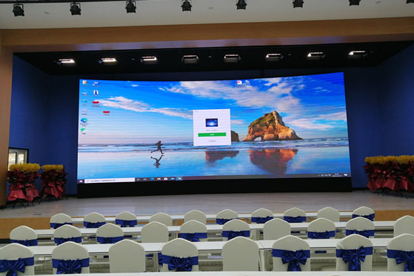 LED顯示屏在會議場合的應用,一般會采用小間距LED系列,如P1.8、P1.5、P1.2、P0.9這幾種規格。在分辨率方面,雖然比拼接屏的低一些,但是可以進行無縫隙拼接,有著更好的一體化顯示效果。