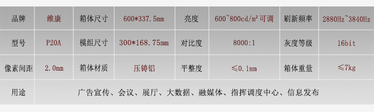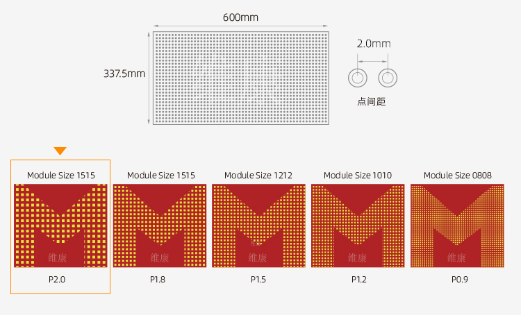 點(diǎn)間距只有2.0mm,采用SMD封裝而成,主要應(yīng)用于室內(nèi)全彩顯示大屏場合。