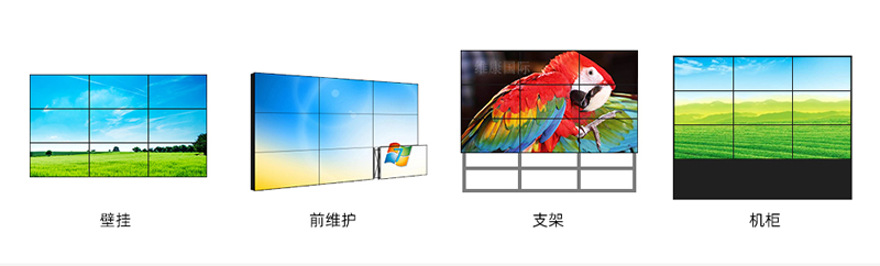根據安裝環境京東方55寸0.88mm液晶拼接屏可以前、后維護,根據墻體結構以及安裝空間的大小可以實現壁掛、支架及機柜式等多種安裝方式。