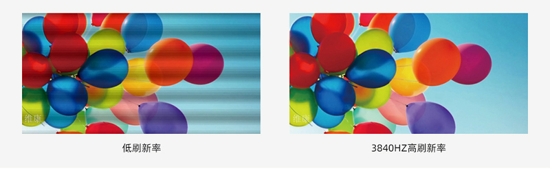 維康國際的P1.2小間距l(xiāng)ed顯示屏的刷新率高達(dá)2880~3840Hz,在相機(jī)拍攝時(shí)完全沒有橫線干擾,沒有水波紋現(xiàn)象。