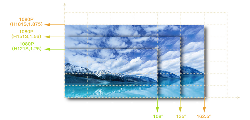 由于箱體是16:9比例,所以在拼接時(shí)只要保證等比例數(shù)量的拼接,整個LED顯示屏就不會發(fā)生變形,從而保證整體的顯示效果。如下圖是通過4*4共16個箱體拼接即可實(shí)現(xiàn)1080P分辨率顯示;P1.5的則可以通過5*5拼接,P1.8的則通過6*6拼接。