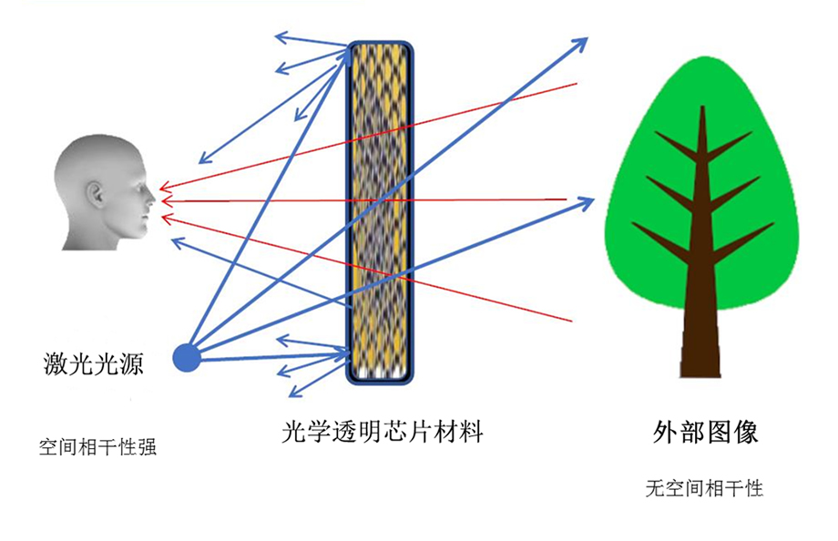 光學數字顯示技術,對透明介質材料進行多層結構調整,只會對激光光源方向的光進行調控,對其他方向的光允許完全透過。從而實現全透明、高清晰的圖像顯示。