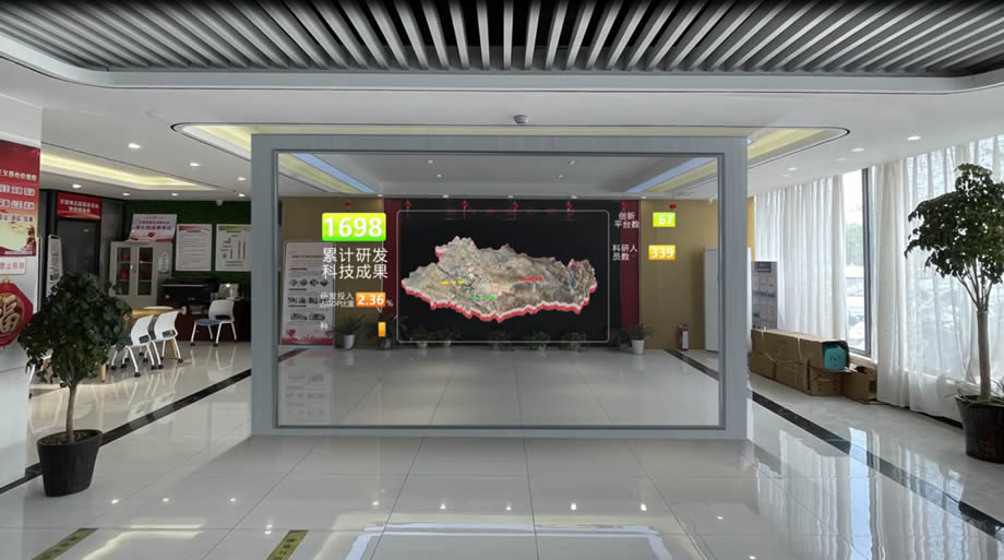 這是一款采用光學數字技術的系那是屏,通過光學屏和光緒實現透明顯示。